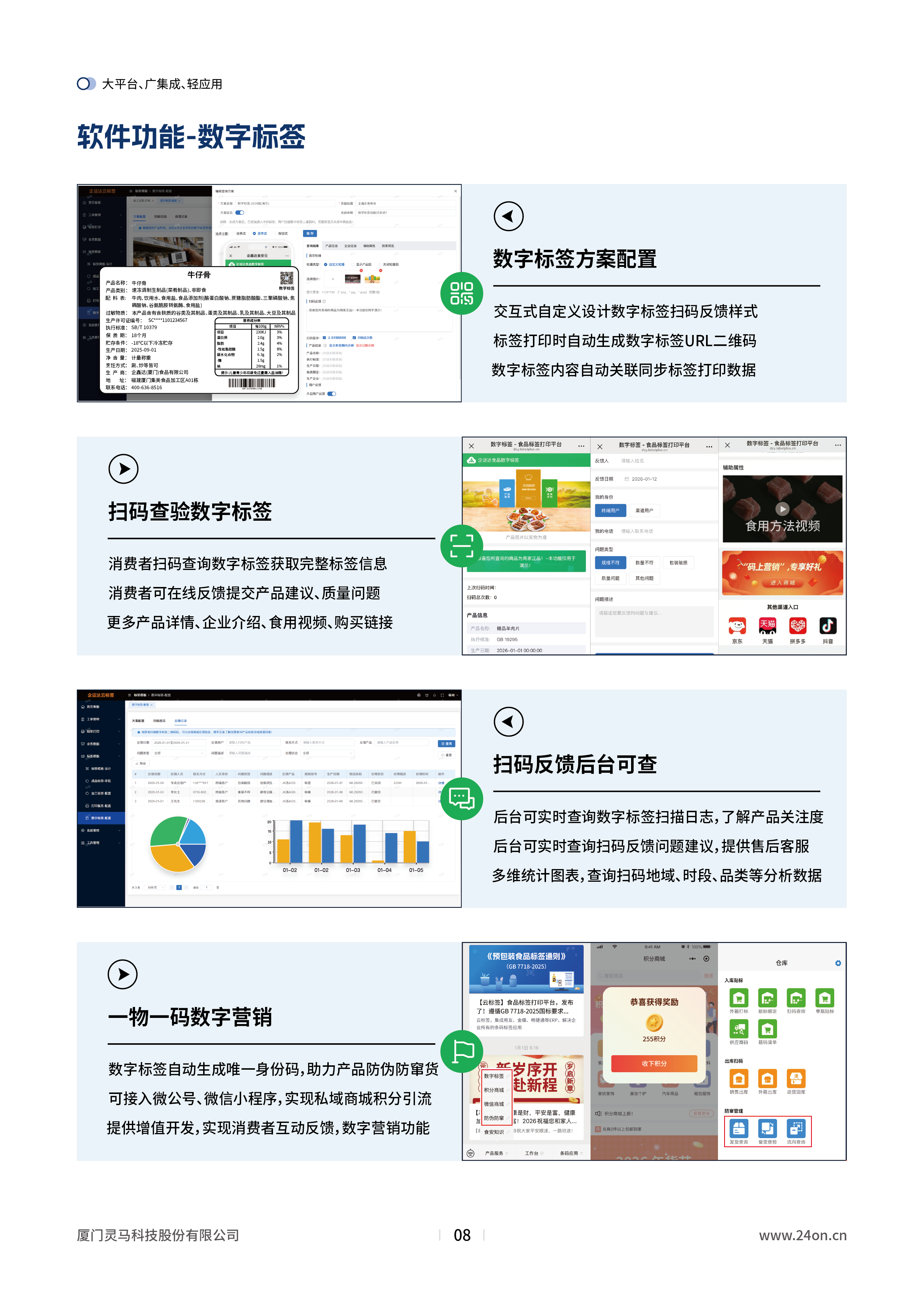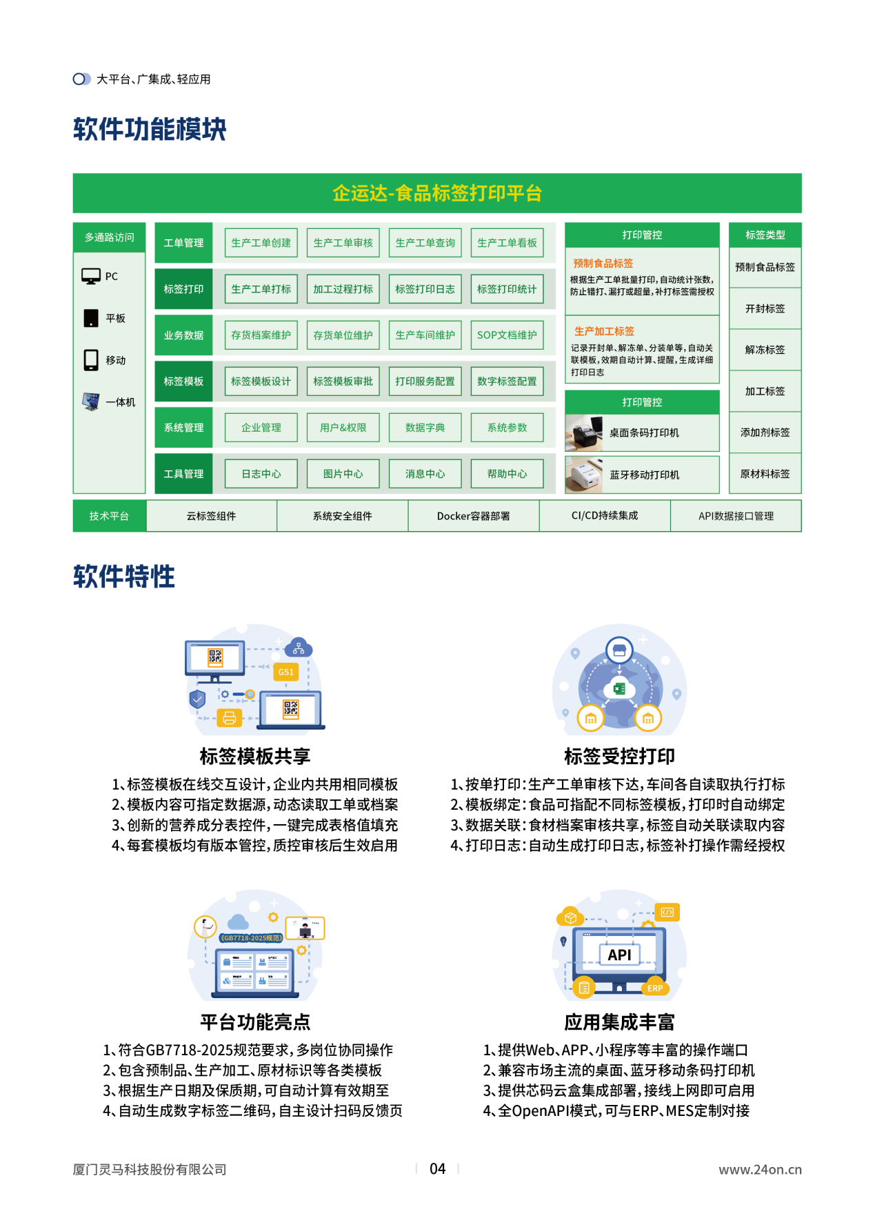 厦门灵马科技股份有限公司以“让物品身份办理更智能”为理念,继续优化易打标产品功用,依托食物标签软件等笔直化解决方案,为饮食业用户更好的供给安稳、市井之徒的标签办理工具。