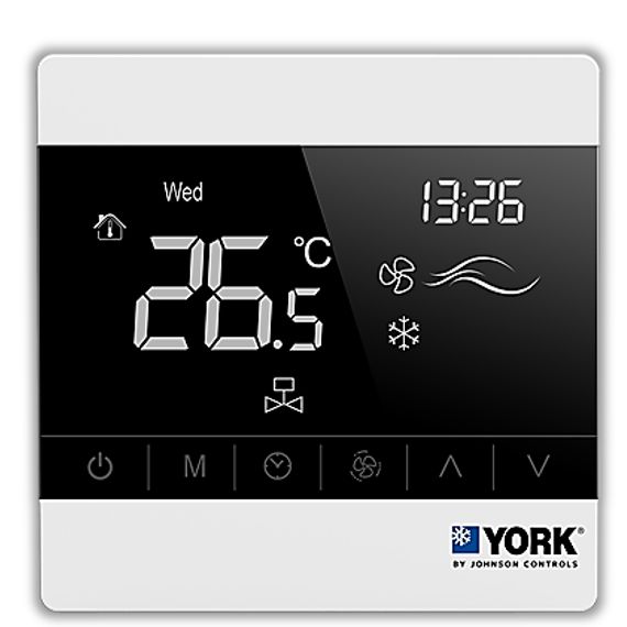 YORK品牌温控器与YORK空调室室外机,YORK室内机共同组成江森自控约克家用水生态中央空调系统,彰显YORK产品的专业化、集成化。